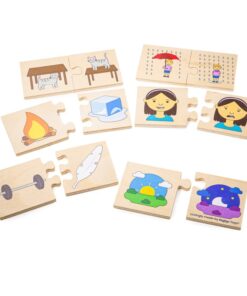 Детски пъзел Противоположности – дървен пъзел Bigjigs. Можете ли да свържете правилните противоположности заедно? С пъзел “Противоположности” децата ще научат за различни предмети от ежедневието и неща, които са полярни противоположности. Какво е обратното на тъга? Какво е обратното на горещ? Този образователен пъзел е лесен начин да обогатите и разиете речника на децата, докато съпоставят противоположностите заедно и научават разликите. Гладките масивни части от мозайката са с идеални размери, за да ги хващат, поставят и разглеждат малките ръчички. Изработен от висококачествена, отговорно добита дървесина и оцветена с нетоксични бои и лакове. Отговаря на настоящите европейски стандарти за безопасност. Пъзел от 32 части. Разгледайте още от категорията “Дървени пъзели” ТУК!