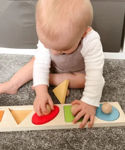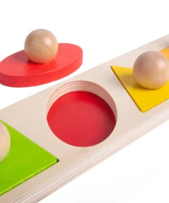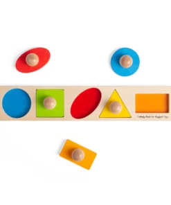 Детски пъзел с дръжки Геометрични форми . Свържете всяко цветно дървено парче пъзел с правилната форма на дъската на основата на пъзела! Какъв цвят е кръгът? Къде отива правоъгълникът? С гладките масивни щипки, дървените части на пъзела са лесни за повдигане и идеални за малки ръчички за повдигане, хващане, разглеждане и подмяна. Този дървен пъзел с форми не само насърчава разпознаването на форми, но също така насърчава разпознаването на цветове. Помага на децата да развият сръчност, умения за съпоставяне и концентрация, докато нареждат фигурите върху здравата дъска с пъзели. Дървените основни дъски на пъзелите Bigjigs Toys са отпечатани с изображения или цветове, за да подпомогнат учебния процес и да добавят образователна стойност. Изработен от висококачествени материали с отговорни източници. Отговаря на настоящите европейски стандарти за безопасност. 5 части от пъзел. Разгледайте още от категорията “Дървени пъзели” ТУК