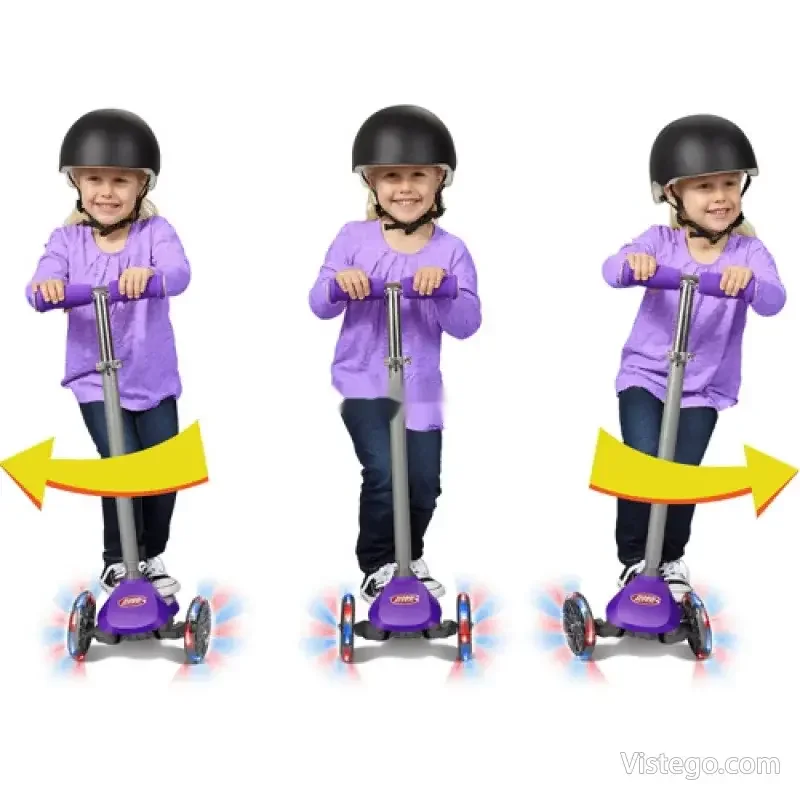 Този детски скутер с три колелца е създаден за активни разходки и игри навън, като комбинира удобство и контрол. Завиването става чрез пренасяне на тежестта и наклон в желаната посока, което прави управлението по-естествено за деца, които тепърва изграждат увереност. Регулируемата дръжка позволява настройка според ръста, а промяната на нивата става без нужда от инструменти. Сгъваемият скутер се прибира по-компактно у дома и е удобен при пътуване, когато искате да вземете любимото средство за игра с вас.