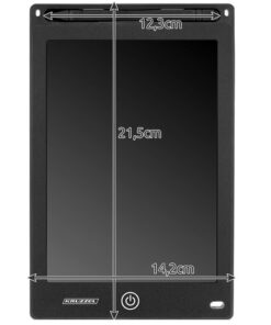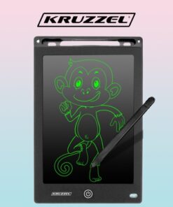 Детски таблет за рисуване 8.5″ черен KRUZZEL 22454. КАК РАБОТИ – екранът на таблета с диагонал 8.5″ създава изображение благодарение на силата на натиск. Всяко докосване (не е задължително да е със стилус – екранът реагира дори на нокътя!) създава изображение / надпис на екрана – каквото и да създадете върху него В горната част има дръжка, която ще ви позволи удобно да съхранявате стилуса, без да го изгубите. ULTRATHIN – таблетът е обезпрашен и безвреден за очите! Не излъчва радиация и е напълно безопасен за употреба. Той е лек и ултратънък – можете лесно да го поставите в раница, чанта или куфарче. ФУНКЦИЯ ЗА ЗАКЛЮЧВАНЕ НА ЕКРАНА – отдолу има плъзгач, който ще ви позволи да защитите съдържанието на екрана. Това ще защити важни бележки, напр. от училище или работа, срещу случайно изтриване. Таблетът има и отвор, който ви позволява да закачите ремък. ОПАЗВАНЕ НА ОКОЛНАТА СРЕДА – използването на таблет също до голяма степен допринася за опазването на околната среда. Не е нужно постоянно да купувате прибори за писане/рисуване – просто използвайте таблет. Работите в офис, студент ли сте? Заменете традиционните бележки с таблет! Вашето дете обича ли да рисува? Нека се забавлява с лексикона! Продуктът може да се използва многократно.