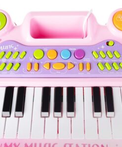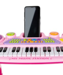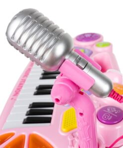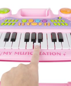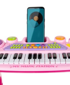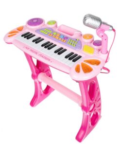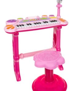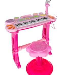 Детско електронно пиано с микрофон и столче е комплект, който включва всичко необходимо на един малък музикант да свири. Комплектът включва клавири – пиано, микрофон, стойка и табуретка за сядане. Превърнете изкуствотов забваление и обратното заедно с вашето дете. Провокирайте креативното мислене под формата на игра и се забавлявайте заедно с малчуганите. Организирайте си караоке парти с приятелии техните деца. Микрофонът в комплекта е с функция Караоке като се свързва с електронното пиано, така детето ви ще се почувства като истинска звезда! Богатият избор от опции гарантира дълго и многократно забавление. Инструментът е снабден с кабели за свързване към телефон или MP3 плейър, което подобрява комфорта на използване и прави забавлението по-привлекателно. Детето може да свири любимата си песен и да припява в ритъма, който създава.