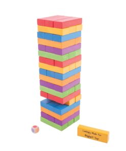 Дженга дървена цветна кула за подреждане Bigjigs. Цветна дървена игра за подреждане на кули, която е забавна за изграждане и още по-забавна, когато блоковете се срутват! Подредете кулата с три блока на слой и след това махайте ред по ред, трябва да премахнете блок – без да се срине кулата! Тази кула за подреждане е вълнуващ начин за младежите да развият координацията между ръцете и очите, сръчността и разпознаването на цветовете. Изработен от висококачествени материали с отговорни източници. Отговаря на настоящите европейски стандарти за безопасност. Разгледайте още от категорията “Дървени пъзели” ТУК!