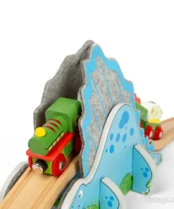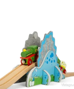 Допълнение влакче релси с динозавърски тунел и релси за разширяване на играта. Съвместимо с дървени системи и Bigjigs.
