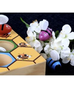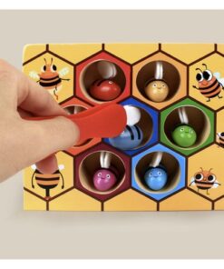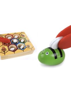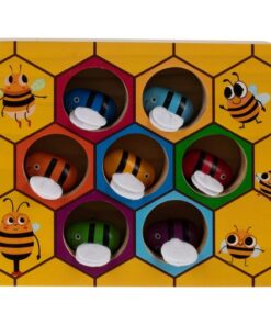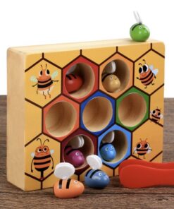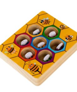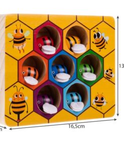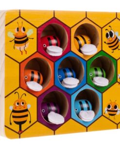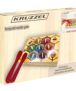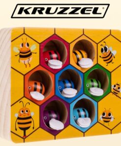 Дървена детска игра Пчелна пита Kruzzel. Тази уникална дървена игра представлява прекрасна идея за забавление с вашето малко дете. Състои се в това да хващате крилата на пчелите с помощта на пластмасови пинсети. Всяка пчела е в различен цвят, а крилата са изработени от филц и са скрити в дървена пчелна пита. Дървените играчки са винаги актуално предложение, което ще зарадва всяко малко дете. Класическата елегантност на дървото и неговата издръжливост го правят изключително ценен материал. Тази суровина изглежда привлекателно както в естествения си цвят, така и боядисана. Играта е напълно безопасна за всяко дете. Натуралната суровина означава, че дори ако детето сложи играчката в устата си, то няма да влезе в контакт с изкуствени материали. Играчката стимулира креативността на малките деца и техните въображения, развива пространственото им усещане, тренира фината моторика на ръчките и усъвършенства усещането за допир. Това е изключителен начин да се тренира координацията между окото и ръката, което е от съществено значение за бъдещето. С играта, изразена в живи цветове, допълнително се насърчава интересът на децата, стимулира въображението им и развива творческите им способности. Играчката е идеално възпроизведение на пчелна пита, съчетавайки учене и забавление. Разгледайте още от категорията “Образователни играчки” ТУК!