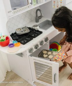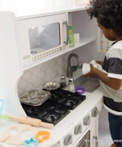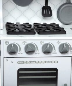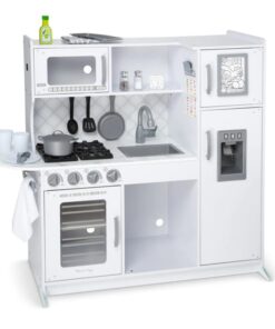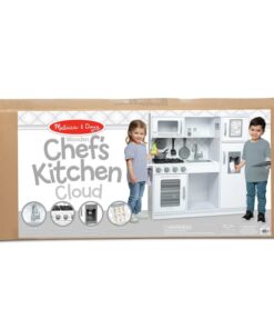 Дървена детска кухня Кухнята на главния готвач Облак Melissa & Doug. Начинаещите млади готвачи могат да усъвършенстват занаята си в тази красиво проектирана модерна кухня за игра в цвят бял мрамор! Лесната за сглобяване кухня на главния готвач включва хладилник/фризер с иновативен работещ ледогенератор, който разпределя две включени „кубчета лед“, фурна и котлон с въртящи се дискове, микровълнова печка с въртяща се плоча, мивка с подвижен кран и дръжка, контролен списък за хранителни стоки, подвижни куки и достатъчно рафтове и съхранение за лесно почистване. Подробните, илюстрирани инструкции правят тази кухня лесна за сглобяване. Здравата, висококачествена дървена конструкция означава, че ще издържи години на творческо измислено приготвяне на ястия! Аксесоарите за игра се продават отделно. Разгледайте още от категорията “Дървени детски кухни” ТУК!