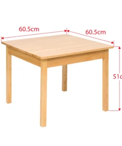 Дървена детска маса за детска стая Bigjigs. Тази първокласна квадратна дървена маса е изработена от гладко каучуково дърво (без трески) и е перфектната част от детската мебел и е идеална за всяка стая за игри или спалня. Използвайте дървената маса за детски изкуства и занаяти, домашна работа по математика, четене и много други. Ако имате нужда от пълен комплект мебели, комбинирайте с някой от дървените столове Bigjigs Toys с цветни седалки (налични в синьо, розово, зелено или жълто). Изработен от висококачествени материали с отговорни източници. Отговаря на настоящите европейски стандарти за безопасност. Изисква сглобяване от възрастен. Разгледайте още от категорията “Обзавеждане за детска стая” ТУК!