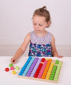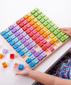 Дървена дъска за подреждане с цифри Научете децата да броят с нашата игра с числа в цвят на дъгата. Включва числа от 1 до 100 върху масивни кубчета и има прост, но привлекателен дизайн, който ангажира младите умове. Идеална както за класната стая, така и за стаята за игри, тази математическа играчка от 100 части е чудесен начин да усъвършенствате броенето и фините двигателни умения. Развива сръчността, концентрацията и способностите за решаване на проблеми на децата. Чудесно и за преподаване на последователност от числа. Нашата табла с числа е забавен и траен образователен ресурс, който със сигурност ще образова за години напред. Изработен от висококачествени материали с отговорни източници и се доставя в удобна дървена табла. Отговаря на настоящите европейски стандарти за безопасност. Възраст 3+ години. Разгледайте още от категорията “Настолни игри” ТУК
