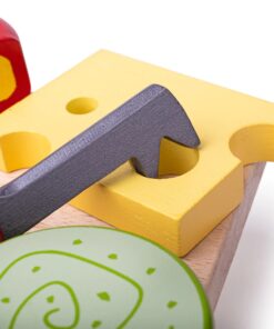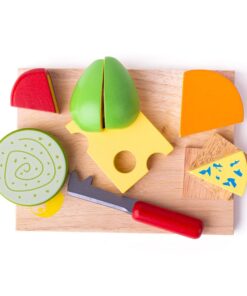Дървена дъска със сирена за детска кухня Да, моля за всички видове сирене! Нашият реалистичен комплект дъска за сирене е идеален за малки домакини и домакини, които да сервират на любимите си гости. Предлага се пълен сет с много дървени сирена (стилтън, чедър, рул, едам, ементал и ябълка), дъска за сирене, дървени бисквити и фалшив нож. Дървената храна за игра е идеална, за да помогне на вашето мъниче да научи за значението на здравословната и балансирана диета, откъде идва нашата храна и как приготвяме храната си. Насърчава креативната ролева игра с въображение. Изработен от висококачествени материали с отговорни източници. Отговаря на настоящите европейски стандарти за безопасност. Състои се от 11 игрални фигури. Разгледайте още от категорията “Дървени играчки за готвене” ТУК