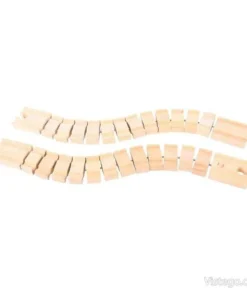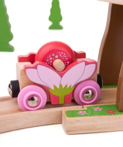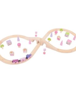 Дървеният влак е подходящ за кратки игри в детската стая, но и за по-дълги занимания, когато детето строи трасе, мести вагоните и разиграва пътувания с различни спирки. Може да се комбинира с налични релси у дома, тъй като включените релси са напълно съвместими и с релсите на други брандове. Така композицията лесно се вписва в съществуващ комплект и насърчава детето да експериментира с подреждане, последователност и посока на движение.