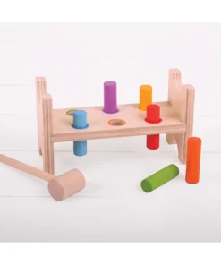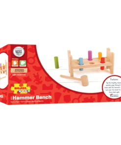 Дървена играчка за деца с чукче Bigjigs. Развиването на координацията ръка/око никога не е било по-забавно, отколкото с Bigjigs Toys Hammer Bench! Докоснете ярко оцветените дървени колчета надолу през дупките, за да създадете плоска работна маса. След това обърнете всичко и започнете отначало! Тази дървена пейка Hammer се доставя със здрав чук и има леко извити ръбове. Помага за развитието на сръчност и координация. Изработен от висококачествени материали с отговорни източници. Отговаря на настоящите европейски стандарти за безопасност. Състои се от 8 игрални фигури. Разгледайте още продукти в категорията “Детски инструменти” – ТУК!