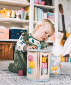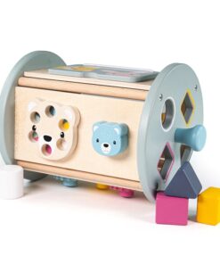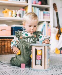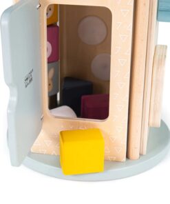 Дървена играчка за подвижно сортиране Монтесори игра Малките ще бъдат запленени от нашия FSC 100% Rolling Activity Sorter. Има четири страни, пълни с дейности, включително дървен сортировач на фигури, дървена книга за обръщане, дървени зъбци и много други. Неговият търкалящ се характер го прави забавна задача за малките деца да се бутат по земята, докато се движат. Малките пръстчета могат да докосват, дърпат, усукват, завъртат и обръщат всички различни дървени елементи от четирите страни на ролката за активност. Това им помага да развият своята сръчност и фини двигателни умения, докато изследват всяка страна. В горната част има сортировач на форми, където заетите ръце трябва да прокарат дървените форми през правилния слот. Сортировачът за дейности също се отваря за лесен достъп до дървените форми. Изработен от FSC сертифицирани материали (FSC C147826), този сортировач на форми е направен по възможно най-етичния начин. Качеството на дървото също означава, че има много години игра в него. Съответства на настоящите европейски стандарти за безопасност. Отговаря на настоящите европейски стандарти за безопасност. Разгледайте още от категорията “Монтесори играчки” ТУК