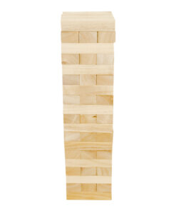 Дървена игра за баланс голяма Дженга Acool Toy. Дървената занимателна игра за баланс е забавна и стимулираща активност, която предоставя на децата уникална възможност да развият няколко важни умения, съчетавайки фината моторика, координацията на движенията и логическото мислене. Със своите 54 дървени блокчета, тази играчка им предоставя интерактивен опит и предизвикателства, които ще ги забавляват и насърчават да изграждат свои стратегии. За да започне играта, децата подреждат дървените блокчета „плътно“ по три в ред и така създават основата на кулата. След това блокчетата на следващите редове се поставят перпендикулярно на тези от предходните, което създава впечатляващи строежи и структури. Това предоставя на децата възможността да бъдат творчески и да експериментират с различни начини на подреждане на блокчетата. Сега, когато кулата е готова, играчите започват да правят своите ходове. Всяко дървено блокче може да бъде преместено на най-горния незавършен ред или да се използва за стартиране на нов ред. Играчите обаче не могат да вземат блокчета от най-горните два реда, което прави играта още по-прецизна и интересна. Тази правила създават предизвикателство за децата, като ги насърчават да избират внимателно и да планират своите ходове. Целта на играта е да запазят стабилността на кулата, като се изберат блокчета, които съответстват на правилната стратегия и момент. Децата трябва да разберат кога да поставят блокчета и кога да не ги избират, за да избегнат срутване на кулата. Това насърчава логическото мислене и стратегическото планиране, като децата се учат да правят преценки, да проследяват причинно-следствени връзки и да развиват умения за решаване на проблеми. Заниманията с този дървен комплект за баланс имат множество положителни последици за децата. Прежде всичко, те подобряват фината моторика, като децата се упражняват в прецизни движения и поставянето на блокчета. Това е от съществено значение за развитието на техните груби и фини моторни умения, които са основа за изпълнение на различни задачи през целия им живот. Координацията между очите и ръцете също се развива, тъй като децата трябва да следят точното място, където поставят блокчетата. Това не само развива техните физически умения, но и подобрява техните способности за прецизност и контрол в движението. Играта насърчава логическото мислене и стратегическото планиране. Децата трябва да изберат правилните блокчета и моменти, за да запазят стабилността на кулата. Това развива техните умения за преценка, причинно-следствени връзки и решаване на проблеми. Тази дървена игра на Дженга е идеална за семейно забавление и може да бъде играна от малки и големи. Тя не само предоставя забавление и радост на децата, но и подпомага развитието на техните умения по забавен и интерактивен начин. Този дървен комплект за баланс е изключително образователен и забавен начин да прекарате времето с вашите деца и да им помогнете да развият различни умения, които ще бъдат от полза в тяхното бъдеще. Това е играчка, която съчетава забавление с образование и дава на децата възможността да учат и развиват умения по време на игра. Разгледайте още продукти в категорията “Дървени пъзели” – ТУК!