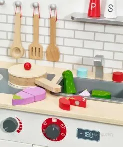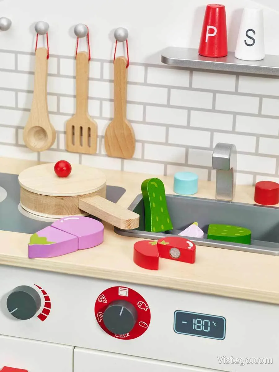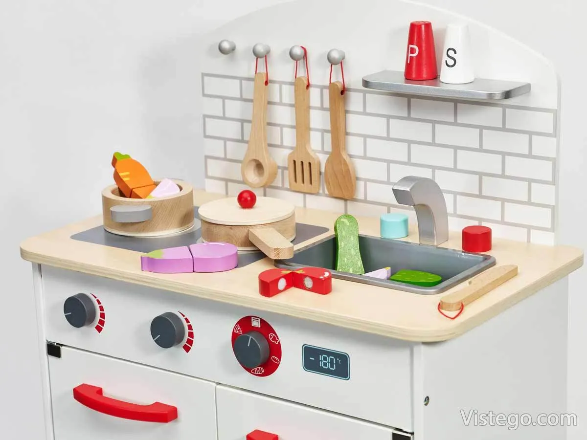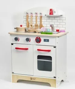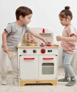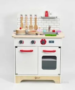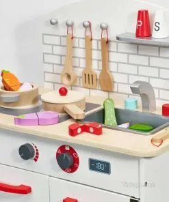 Дървена кухня за игра с аксесоари е чудесен начин детето да превърне ежедневните сцени у дома в увлекателна роля, в която то „готви“, подрежда и сервира, както е виждало при възрастните. Този тип игра помага на малките готвачи да измислят собствени истории, да разпределят роли и да общуват по-уверено, докато се забавляват в своя кът за въображаемо готвене.