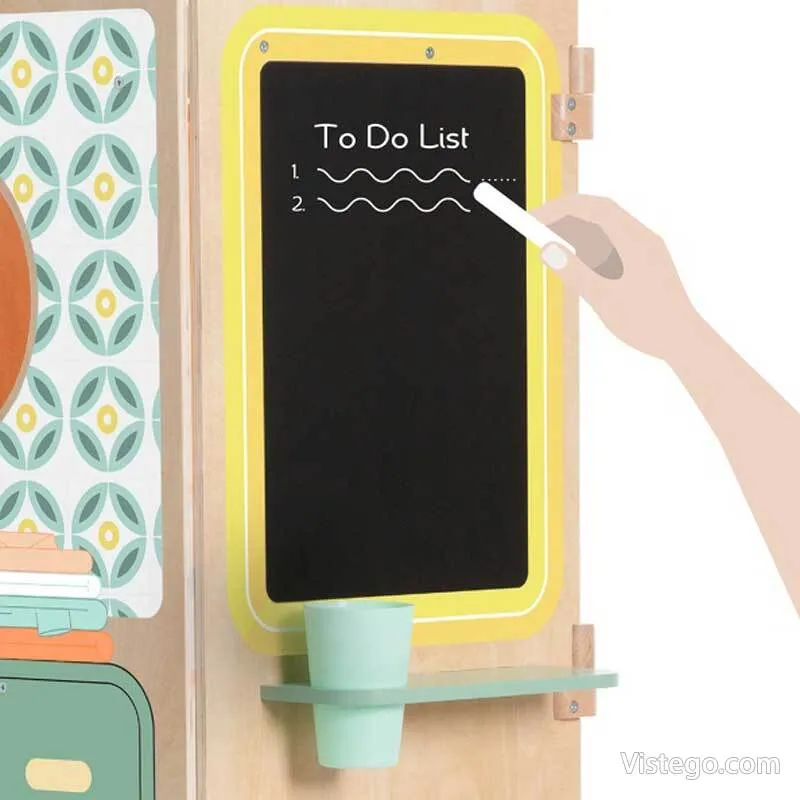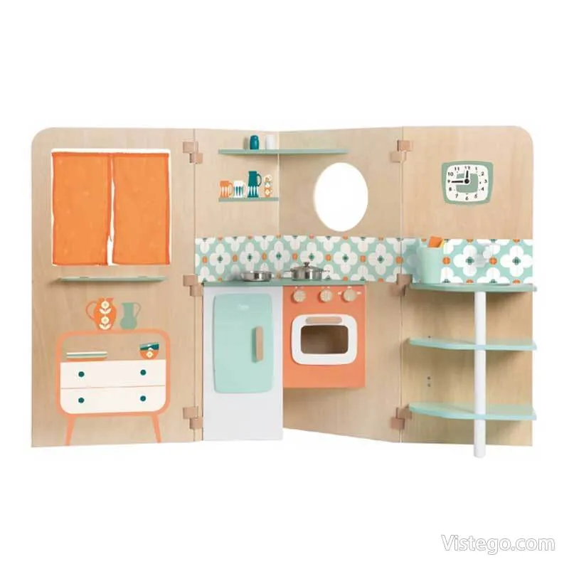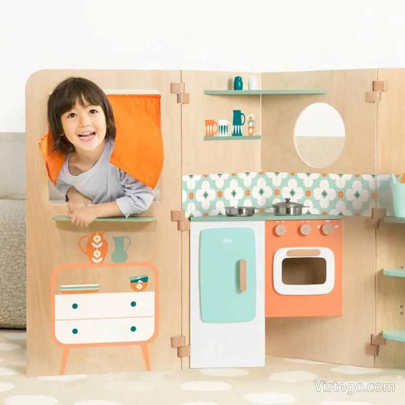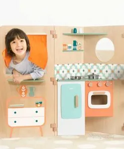 Моделът е замислен като многоцветна дървена конструкция с различни стаи, която позволява на детето да измисля разположение и да променя сцените в играта. Отварящите се врати и прозорци добавят интерактивност и дават повече варианти за разказ и действие. Идеята е децата да могат да аранжират интериора, като поставят мебели и фигури и променят обстановката според историята, която създават.