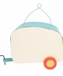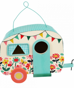 Дървена къща за птици цветна каравана . Перфектният аксесоар за градина, тази прекрасна дървена къщичка за птици е оформена като ретро каравана със завеси. Тази дървена къщичка за птици е украсена с пеперуди и цветя от нашата красива щампа Градина с пеперуди. Обща височина, включително метална тел: 30 см. Внимание: съдържа остри ръбове. Разгледайте още продукти в категорията “Играчки за навън” – ТУК!