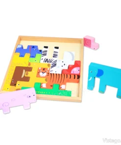 Дървена логическа игра за подреждане на цветни фигури по шаблон