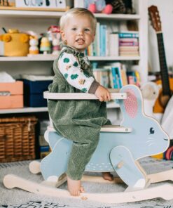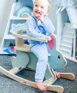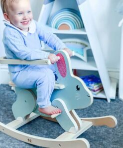 Дървена люлка за деца Зайче Bigjigs. Качете се на нашия очарователен люлеещ се заек! Тази мека цветна играчка за яздене е направена от устойчива, отговорно добита дървесина от FSC сертифицирани гори. Съвременният дизайн добавя стилна нотка към всяка детска стая или стая за игра. Подходящо за деца на възраст над 18 месеца, това е идеалната люлееща се играчка за малки деца. Предпазителят може да се регулира, за да отговори на нуждите на вашето растящо бебе. Перфектен за развиване на детския баланс, координация и, разбира се, укрепване на малките крачета! Предлага се с дървени стремета за допълнителна стабилност и неутрални цветове, които са подходящи както за малки момчета, така и за малки момичета. Изработена от висококачествена, устойчива FSC сертифицирана дървесина и оцветена с нетоксични бои и лакове. Отговаря на настоящите европейски стандарти за безопасност. Разгледайте още продукти в категорията “Люлеещи се играчки за яздене” – ТУК!