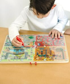 Дървена магнитна дъска Лабиринт Пес Патрул Melissa & Doug. Кученцата от PAW Patrol™ са вече на позиции, готови за работа! Вземете магнитната пръчица, прикрепена към играта, и се насладете на четири уникални самостоятелни лабиринта: броене на строежи, състезателна писта Adventure Bay, забавление в Firehouse и събиране на рециклирани материали. Частите са под плътен прозрачен капак, което означава, че няма бъркотия, правейки това перфектно занимание за развитие на уменията при пътуване или за домашна игра. PAW Patrol™ винаги е тук, за да помогне, вдъхновявайки предучилищната възраст с микс от екипна работа, приключения и хумор, докато децата развиват социални, емоционални и умения за развитие чрез игра. Този продукт е сертифициран от Съвета за управление на горите (Forest Stewardship Council – FSC). Сертификацията от FSC гарантира, че продуктите произлизат от отговорно управлявани гори, които осигуряват екологични, социални и икономически ползи, и че горите са защитени за бъдещите поколения. Моля, обърнете внимание, че FSC сертифицирането се прилага само за нови инвентари (FSC C156584). Разгледайте още продукти в категорията “Образователни играчки” – ТУК!