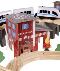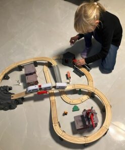Дървена писта с влакче и аксесоари Kruzzel 22754. ГОЛЯМ КОМПЛЕКТ ОТ 70 ЕЛЕМЕНТА – комплектът се състои от 70 прецизно изработени и красиво завършени елемента, които можете да подредите по собствена идея. Комплектът включва дървена писта, пътнически влак, пазач и хеликоптер, комплект дървета и знаци и фигури. Елементите на дървено влакче са свързани с помощта на магнити. Магнитите са силни – не пускат дори когато целия комплект е вдигнат. СТИМУЛИРА ВЪОБРАЖЕНИЕТО – играчката стимулира креативността и въображението на децата. Възможността да проектирате и изградите свои собствени писти, а след това да проектирате и създадете пейзажа около тях, е страхотно забавление за всички. Тестването на създадените от тях писти ще бъде много забавно за всяко дете. РАЗВИВА – пистата с влак е не само страхотно забавление, но и развива чувството за пространство, упражнява малките ръчички и стимулира усещането за допир. Това е чудесен начин да тренирате координацията око-ръка, която е толкова важна в бъдеще. БЕЗОПАСНО – опашката е безопасна за деца. Всички дървени елементи са идеално полирани и боядисани с екологични бои. Няма изпъкнали остри елементи, които да наранят детето.Дървено влакче е страхотна идея за упражняване на въображението и креативността на вашето дете. Подходящи за игра у дома и на открито. Комплектът се състои от прецизно изработени и красиво завършени елементи, които можете да аранжирате по собствена идея. Играчката стимулира креативността и въображението на децата. Възможността да проектирате и изградите свои собствени писти, а след това да проектирате и създадете пейзажа около тях, е страхотно забавление за всички. Тестването на създадените от тях писти ще бъде много забавно за всяко дете.Разгледайте още продукти в категорията “Дървени влакчета” – ТУК!