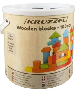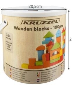 Дървени детски блокчета 100 бр. Kruzzel. Творческо и весело забавление – дървените кубчета представляват изпълнение на мечтата на всяко дете, обичащо да създава различни конструкции. Играта и ролевите възможности са практически неограничени, правейки тези кубчета ефективно средство за противодействие на скуката. Всичко това се предлага във внимателно подбрана кофа с удобна дръжка, оборудвана с сортиращ капак и платнена торбичка за блокчетата. Образователните блокове са живо оцветени, което интензивно подпомага въображението на децата. Така играчката не само развива креативността на детето, но и усъвършенства логическото му мислене. Известно е отдавна, че дървените играчки са в състояние да предоставят забавление през поколения, като остават неповредени. Дървените блокчета са изключително устойчиви, следователно няма опасност от нараняване на детето, както при пластмасовите играчки. Разгледайте още от категорията “Образователни играчки” ТУК!