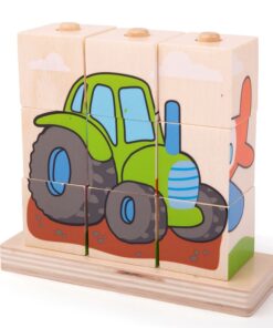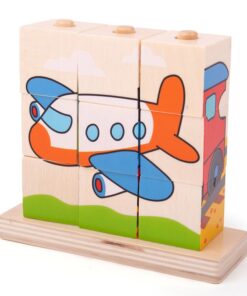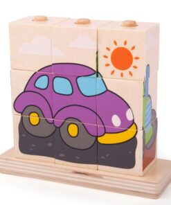 Bigjigs – Дървени кубчета за нанизване – Превозни средства