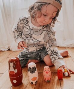 Дървени матрьошки за деца Животните от фермата Bigjigs. Насърчавайте и развивайте речников запас, докато децата говорят за различните селскостопански животни, представени на всяка матрьошка. Обсъждат каква храна ядат, какви звуци издават, типа среда, в която живеят и т.н. Тези очарователни руски кукли от селскостопански животни включват крава, овца, прасе, кокошка и пиле. Страхотен подарък или декоративен елемент за детска стая, спалня или стая за игра. Изработен от висококачествени материали с отговорни източници. Отговаря на настоящите европейски стандарти за безопасност. Разгледайте още от категорията “Детски кукли” ТУК!