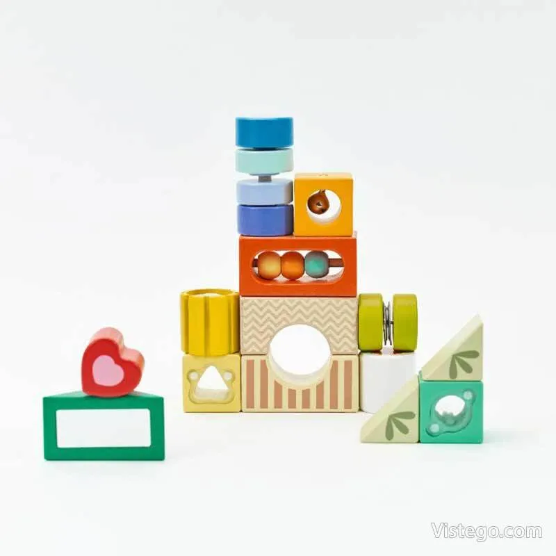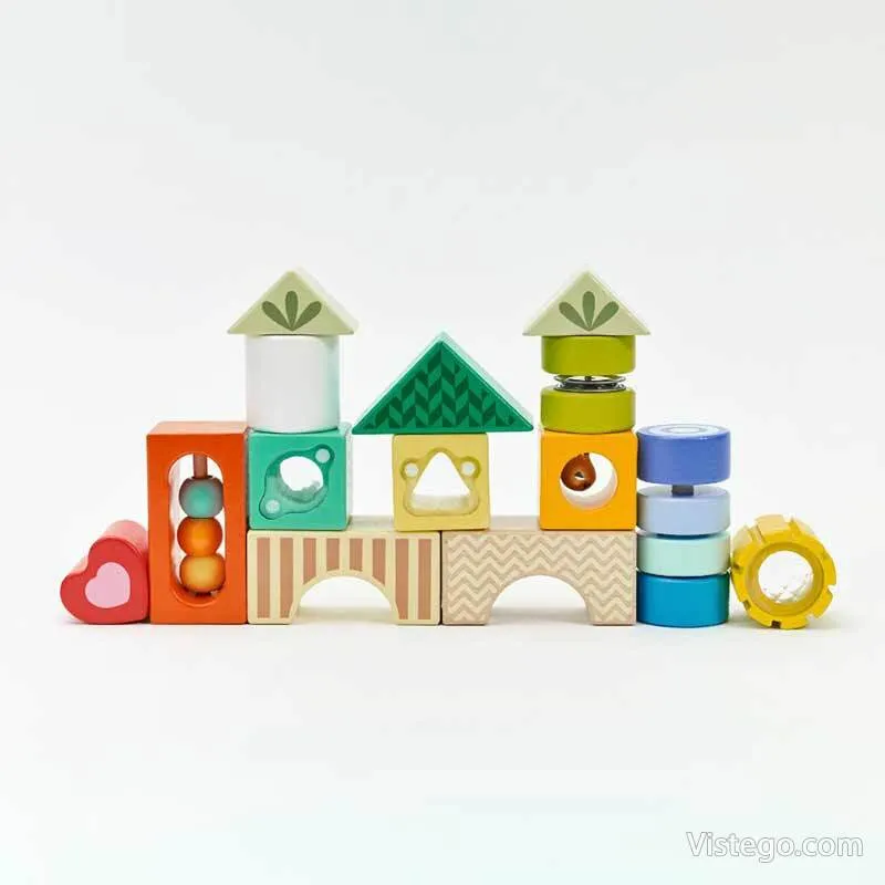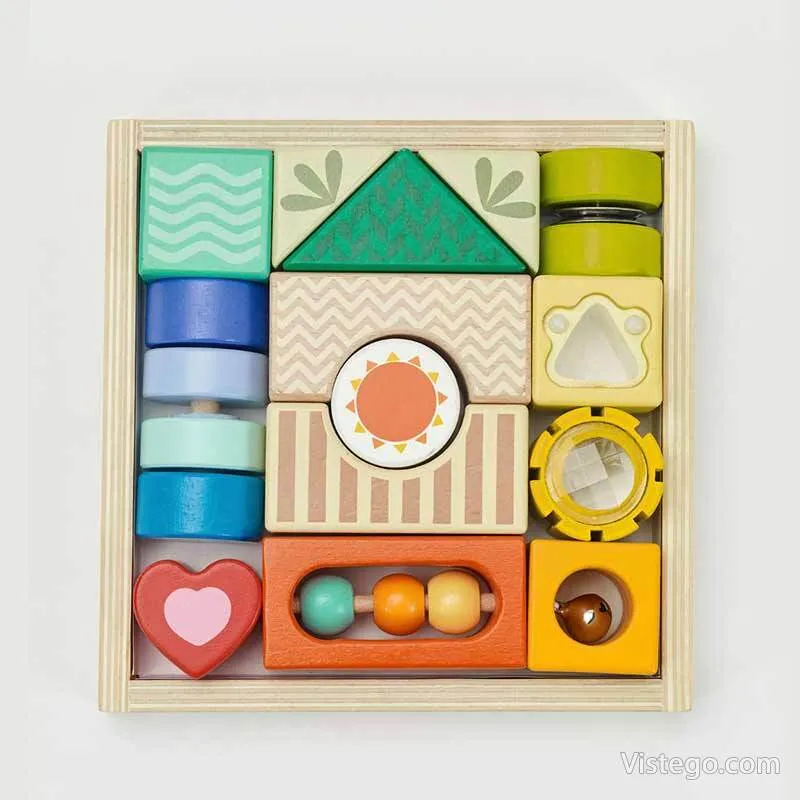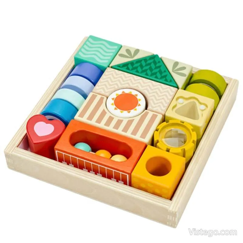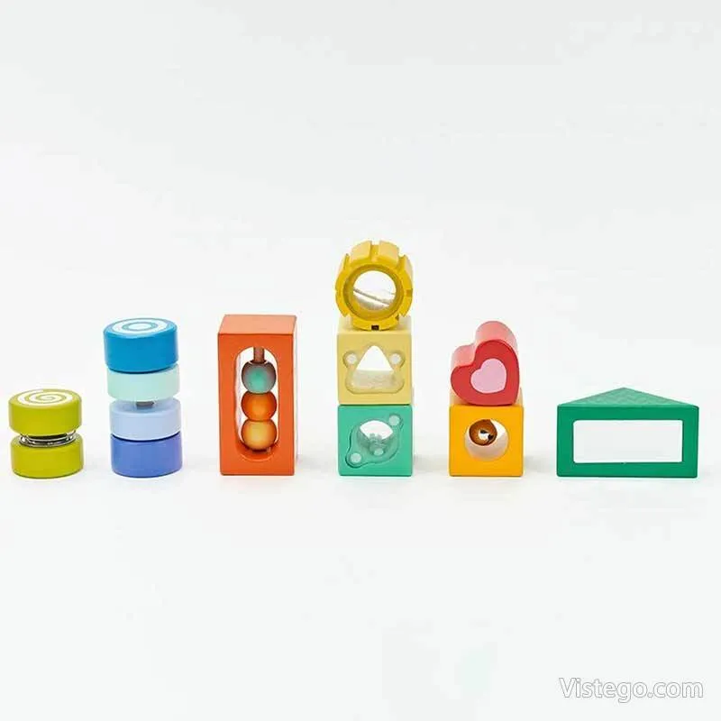 Дървени цветни блокчета за сензитивност дават на детето лесен начин да изследва света чрез допир, звук и наблюдение, като превръщат играта в спокойна, занимателна рутина у дома.