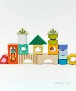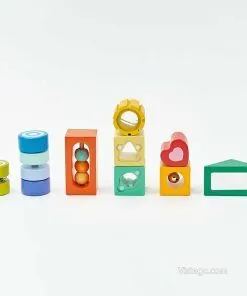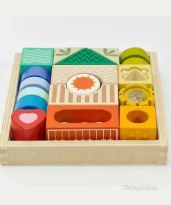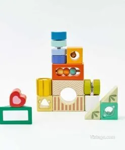 Този комплект дървени цветни блокчета е създаден така, че децата да ги „опознават“ по няколко начина. Можете да ги поканите да откриват какво се случва, когато ги разклатят, да сравняват усещанията при докосване и да наблюдават ярките цветове. Различните форми насърчават малките ръце да хващат, завъртат и подреждат, а това постепенно изгражда увереност в движенията. Дървените цветни блокчета за сетивна игра са подходящи както за самостоятелни моменти, така и за споделена игра с родител, в която детето описва какво вижда и усеща.