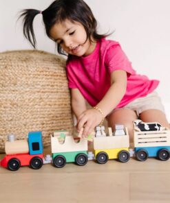 Характеристики на Дървено влакче с аксесоари Ферма Melissa & Doug: