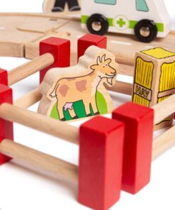 Дървено детско влакче с релси мостове и пътища Bigjigs. Насладете се на най-доброто от железниците и пътищата с нашия комплект дървени влакове Road & Rail. Двулентовото платно минава под коловоза и през жп прелез, докато влакът и ярко оцветените вагони се отправят към провинцията. Този детски комплект дървени влакчета включва животни от фермата, превозни средства, дървета и изобилие от градски и селски хора. Свързва железопътната линия и пътя, като гарантира, че децата имат много за взаимодействие. Състои се от 80 игрални фигури. Предлагат се допълнителни аксесоари за разширяване на този комплект. Повечето други големи марки дървени железопътни линии са съвместими с Bigjigs Rail. Изработен от висококачествени материали с отговорни източници. Отговаря на настоящите европейски стандарти за безопасност. Разгледайте още от категорията “Дървени влакчета” ТУК!