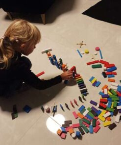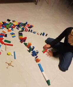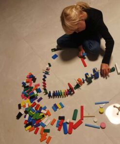 Дървено домино 360 Kruzzel 22914. 407 АРТИКУЛА – комплектът включва 360 блокчета домино в 12 цвята – кафяво, черно, 2 нюанса на синьото, оранжево, червено, розово, зелено, жълто, лилаво и бяло. Комплектът включва и чанта с шнур за съхранение и удобно пренасяне на комплекта. ПОДПОМАГА РАЗВИТИЕТО – блокчетата дървено домино са предимно с красиви, ярки цветове, които стимулират въображението на най-малките и стимулират тяхната креативност. Играта с тях също е упражнение за ръчни умения и координация око-ръка. ДОПЪЛНИТЕЛНИ АТРАКЦИИ – комплектът включва и много различни, интересни бонуси, които ще издигнат забавлението на по-високо ниво с допълнителни емоции! Комплектът включва: 3 топки, люлка, вятърна мелница, камбана, висяща топка, стъпала с различна височина, стълби, мостове, пързалки и много други за игра с домино. ОТЛИЧНО КАЧЕСТВО – блокчетата са масивно изработени, всяко едно е изработено от дърво и боядисано със специална боя. Освен това няма изпъкнали, остри елементи, които биха могли да навредят на детето. Дървените кубчета домино са най-добрият избор за деца от най-ранна възраст. Комплектът е идеален за цялото семейство – ще осигури много часове забавление заедно! Представеният комплект предлага безопасно забавление, което ще развие способностите на детето. Подарете си едно истинско семейно забавление с прерасното цветно дървено домино! Не можете да пропуснете такава оферта за супер подарък за дете! Разгледайте още продукти в категорията “Образователни играчки” – ТУК!