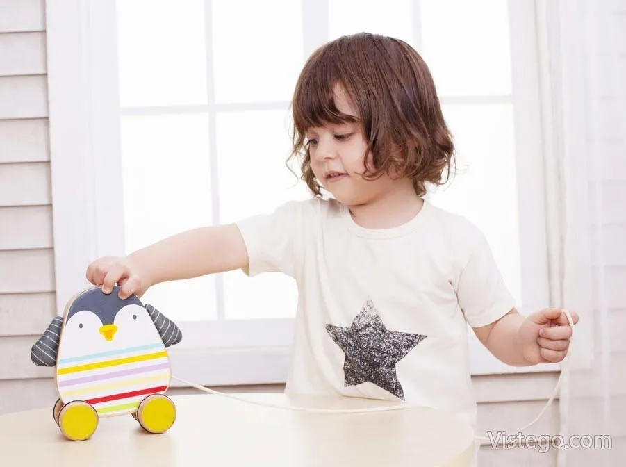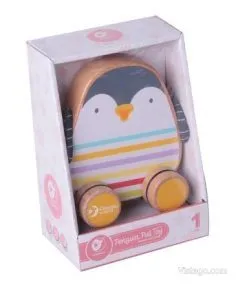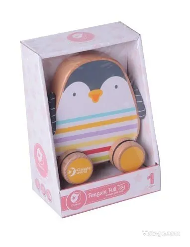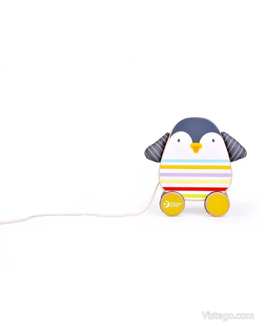 Дървено пингвинче за дърпане за ежедневна игра у дома. Естествен материал и приятна лекота за занимания, подходящо за деца.