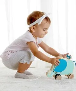 Дървено слонче за дърпане „Слонче“ превръща всяка разходка из дома в по-интересна игра, когато мъничето прави първите си крачки. Докато детето дърпа играчката след себе си, ушичките издават звук, който привлича вниманието и поддържа любопитството будно. Така ходенето се усеща като забавно приключение, а не като усилие, и детето естествено има желание да се движи и да опитва отново.