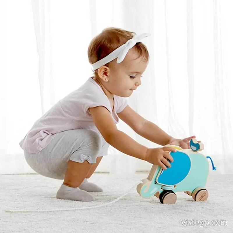 Играта с дървено слонче за дърпане подкрепя естественото развитие на детето, защото съчетава движение, внимание и повторение. Когато детето дърпа играчката, то упражнява координацията между ръцете и краката, както и чувството за баланс. В процеса малките любознайковци опознават света около себе си, развиват двигателните си умения и постепенно подобряват координацията и баланса си, докато се забавляват.