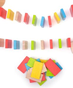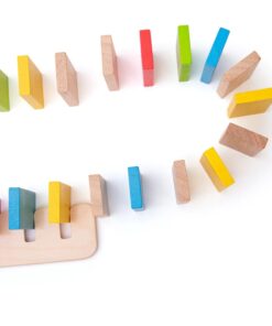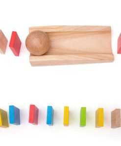 Дървено цветно домино Domino Run Bigjigs. Domino Run представлява обширен дървен комплект за домино, който не само ще забавлява децата, но и ще предостави часове на удоволствие за възрастните. Малките играчи имат възможността да поставят доминото в различни редици и последователности, да ги съборят и да се забавляват с този процес отново и отново. Комплектът включва 110 части, включително топка, рампа, два превключвателя на посоката и стълби, които може да се добавят към всяка последователност, за да я направят още по-занимателна. Но забавлението не приключва тук – децата имат възможността да изразят своята креативност, използвайки книги, кутии за компактдискове и други безопасни предмети от дома, за да създадат уникални последователности. Този процес не само тества търпението, но и помага за развиване на разпознаването на цветовете и насърчава творческа и въображаема игра. Игралните фигури са изработени от висококачествени материали с отговорни източници и отговарят на всички европейски стандарти за безопасност. Разгледайте още от категорията “Образователни играчки” ТУК