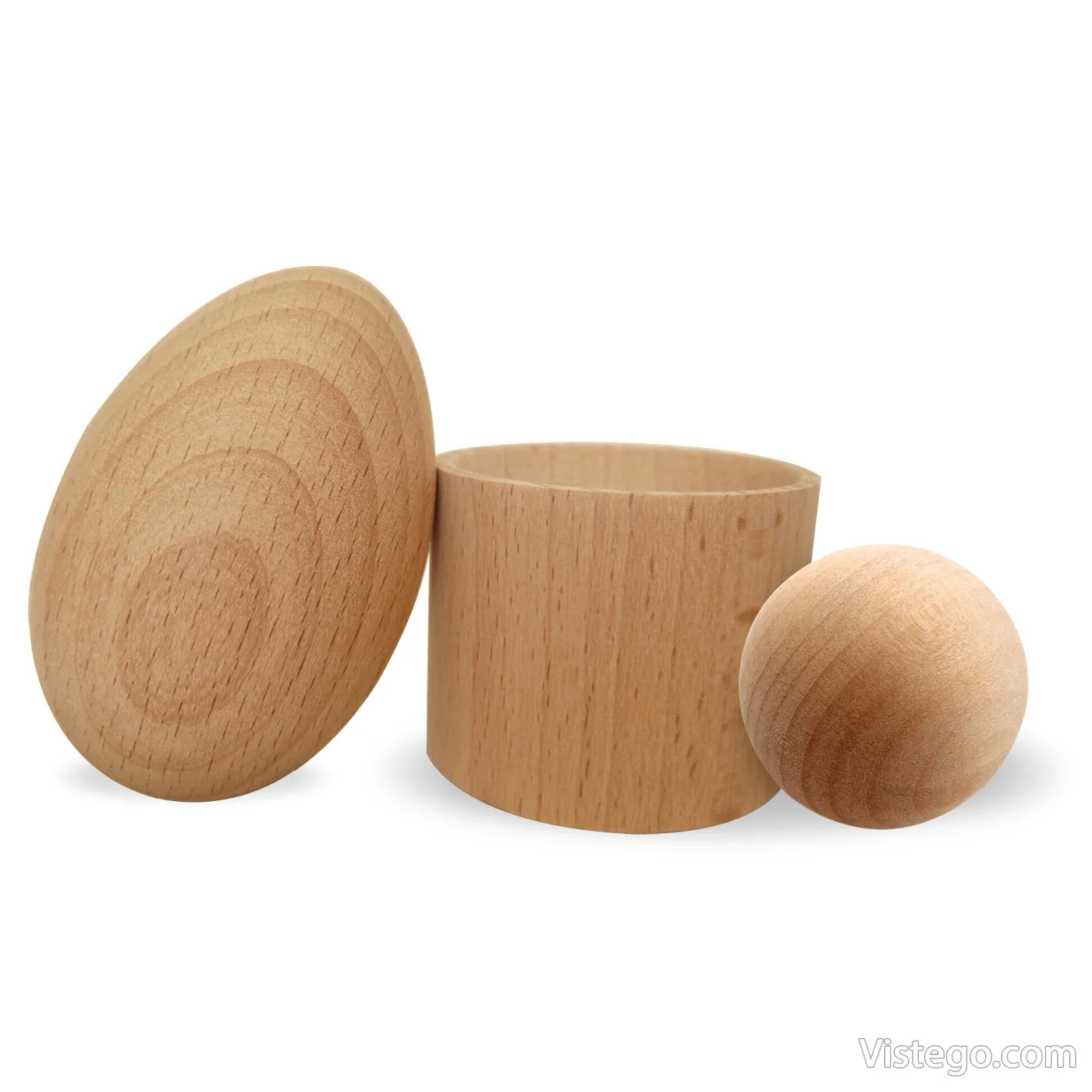 - Комплектът се състои от: дървено яйце; дървено топче; чашка, в която могат да се поставя.