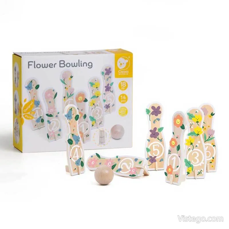 Ако търсите занимание, което съчетава движение, игра и лесно прибиране, дървеният боулинг с цветя е практичен избор. Получавате комплект, който е приятен за игра, удобен за съхранение и подходящ както за момичета, така и за момчета, като подкрепя уменията, които се развиват най-добре чрез забавление.