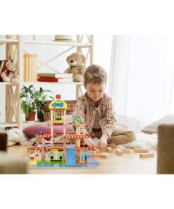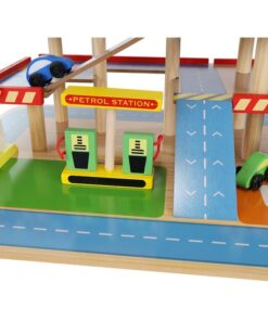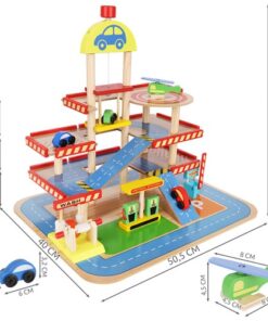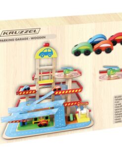 Дървен гараж с колички и камиони Kruzzel. ПАРКИНГ ПАРКИНГ – ДЪРВЕН ГАРАЖ – комплектът с колички се състои от 27 дървени елемента (автомивка, бензиностанция, билетна каса, 4 коли, хеликоптер, платформа на 4 нива, път и монтажен комплект), след сглобяването ще получим страхотно изглеждащ реалистичен гараж – паркинг, който ще зарадва всеки малчуган. Играчката е изработена от дърво и боядисана с безвредна за здравето на вашето дете боя. MADE OF WOOD – дървените играчки са вечно предложение, което ще зарадва всяко дете. Класическата красота на дървото и неговата издръжливост винаги са го оценявали високо. Тази суровина изглежда добре както в естествен цвят, така и боядисана. БЕЗОПАСНО – тъй като играчката е изработена от дърво, тя е безопасна за всяко дете. Естествената суровина означава, че дори детето да сложи играчката в устата си, то няма да влезе в контакт с изкуствени материали. Няма изпъкнали остри елементи, които да наранят детето. РЕАЛИСТИЧНО – структурата на играчката перфектно отразява реалността. На първо и второ ниво има паркоместа и свързващ ги път, по който могат да се движат автомобили. На последния етаж има площадка за кацане на хеликоптер. До пътя има автомивка, бензиностанция и каси за билети за паркиране. Гараж – дървеният паркинг е не само много забавен, но и безопасен. Това е идеално решение за всички деца, които се интересуват от автомобили, въртящи се колела, както и тези, които харесват пружини и други коли. Комплектът доставя много радост, дава възможност за развитие на рефлекси и ръчна сръчност и осигурява забавление, докато играете сами, в група връстници или с родители или настойници. Разгледайте още продукти в категорията “Дървени колички и камиони” – ТУК!
