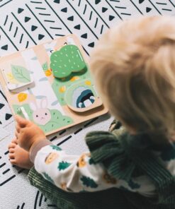 Дървен детски пъзел Горска криеница Bigjigs. Има много горски забавления с този очарователен пъзел с животни FSC Woodland Animal Puzzle. Този дървен пъзел за деца е направен от устойчиво, отговорно добито дърво от FSC сертифицирани гори. Четирите горски създания са скрити зад различни врати на дървената основа на пъзела и са закрепени със здрав ластик. Обръщащото се движение е идеално за развиване на сръчността на малките, докато повдигат, хващат и разглеждат парчетата от пъзела. Малките деца могат да откриват и научават за различните животни, докато си проправят път около пъзела. Идеален за развиване на креативност и сръчност. Изработена от висококачествена, устойчива FSC сертифицирана дървесина и оцветена с нетоксични бои и лакове. Отговаря на настоящите европейски стандарти за безопасност. Разгледайте още от категорията “Дървени пъзели” ТУК!