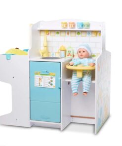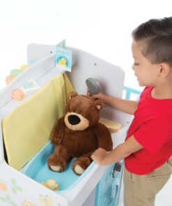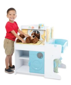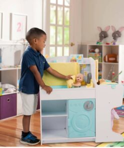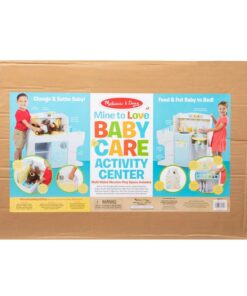 Дървен детски център за грижа за куклите 3 в 1 Melissa & Doug. Този мултифункционален център за грижи за бебета с кукли и плюшени животни има всичко, от което децата се нуждаят, за да отглеждат и играят със своите специални бебета! Здравият дървен център включва кухня с хладилник, мивка и столче за хранене. Зоната за преобличане и къпане разполага с вана със спрей-дюза и падаща подложка за повиване, огледало, дозатор за кърпички, място за изхвърляне на пелени и пералня с щракащ диск. Детската стая има люлееща се люлка, място за съхранение на дрехи и прозорец с капаци с карта, която може да се обърне към дневна или нощна сцена. Включени са подробни инструкции за сглобяване. Деца на три и повече години ще се радват да имат собствено пространство, където да отглеждат и да се грижат за своите бебета! Разгледайте още от категорията “Детски дървени магазини” ТУК!