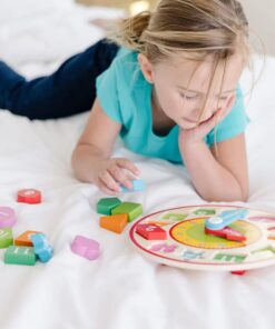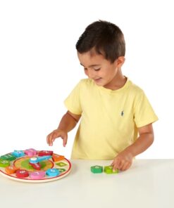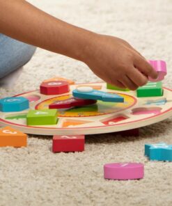 Дървен детски часовник сортер Цветове и форми Melissa & Doug. Нашият часовник, подходящ за предучилищна възраст е с по-голямото лице, откритото естествено дърво и ярките цветове върху съвпадащите масивни части създават свеж модерен външен вид, но класическата игрова стойност и висококачествената конструкция остават същите. Децата обичат цветно кодираните минутни и часови стрелки, които се въртят с просто натискане. (Без значение къде сочат, винаги е време за учене и забавление!) Децата могат да сравняват цветовете, да сортират формите и да решават пъзела, докато манипулират цветните блокове и въртят ръцете, изграждайки когнитивни и двигателни умения и полагайки основите за да се научите да казвате времето. Дейностите, отпечатани точно върху кутията, насърчават интерактивната игра, като помагат на децата да започнат да овладяват концепции за ранно учене, докато се запознават с формата на часовник и понятията за време. Разгледайте още от категорията “Образователни играчки” ТУК