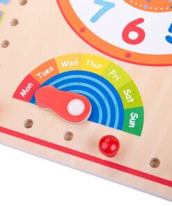 Характеристики на Дървен детски часовник с календар Bigjigs: