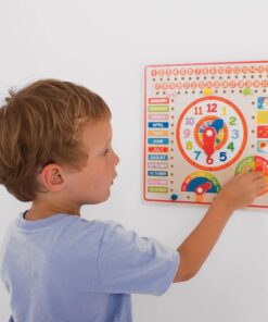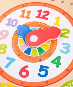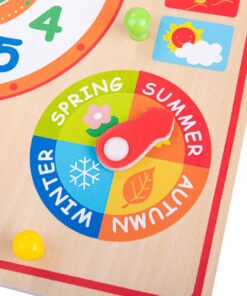 Дървен детски часовник с календар Bigjigs. Нашият дървен часовник и календар са пълни със забавни функции и възможности за учене. Научете как да разпознавате часа с големия часовник и как да разпознавате различните месеци и дни от седмицата. Тази образователна играчка включва голям часовник, за да се научите да казвате часа и деня, месеца и сезона, табла и циферблати за дните от седмицата и сезоните! Фантастично допълнение към всяка зона за игра, тъй като е страхотно забавно и изключително образователно. Нашият дървен часовник помага за развитието на сръчността, концентрацията и общите познания на децата. Изработен от висококачествени материали с отговорни източници. Отговаря на настоящите европейски стандарти за безопасност. Разгледайте още от категорията “Образователни играчки” ТУК!