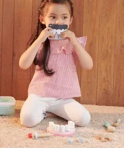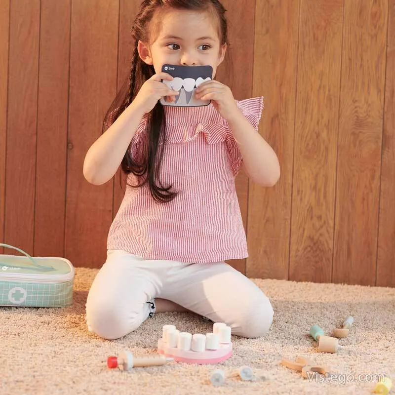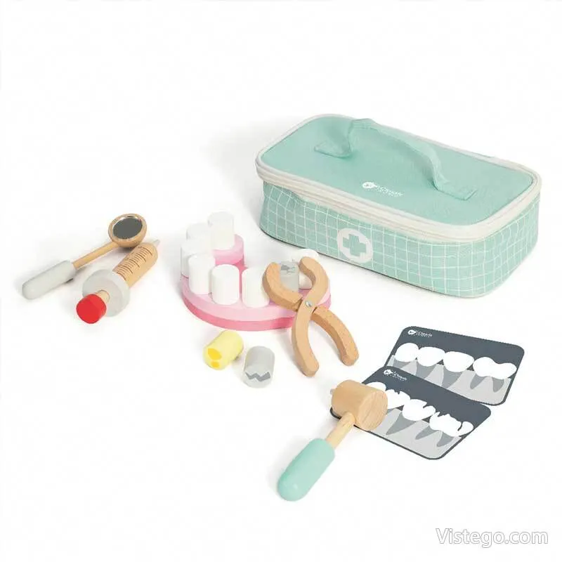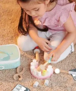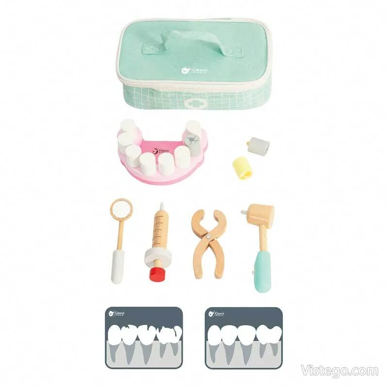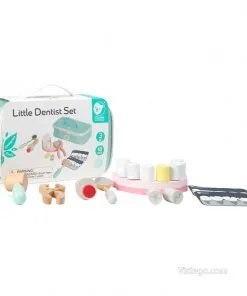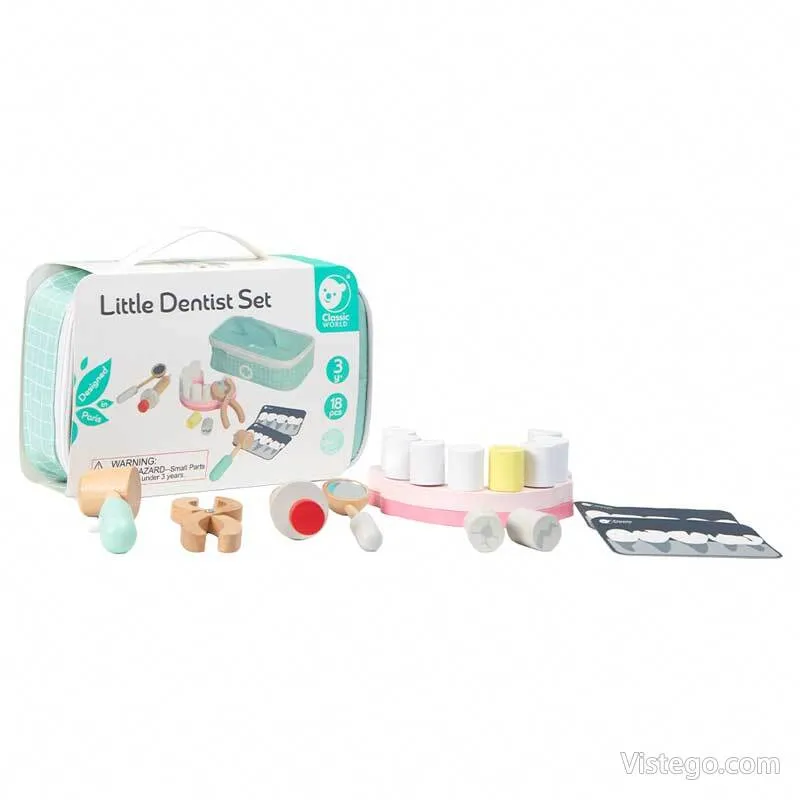 Дървен комплект „Малкия зъболекар“ за ролеви игри у дома – аксесоари за забавни „прегледи“, подреждане и учене за здрави зъби.
