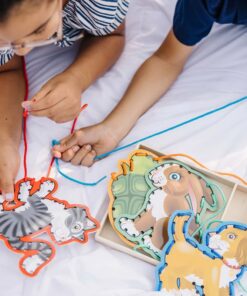 Melissa & Doug – Дървен комплект за нанизване на шнурове – Домашни любимци