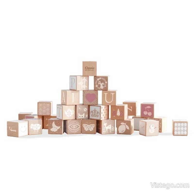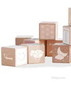 Кубчетата със символи добавят още една посока на игра. С буквите и цифрите малчуганите могат да подреждат първите си думички и прости задачи, докато строят. Това подпомага ранните представи за знаци и последователност, а паралелно се развива и фината моторика чрез хващане, завъртане и прецизно поставяне. Дървеният конструктор насърчава сръчност и наблюдателност, а разнообразните рисунки провокират любопитство и разказване на истории.