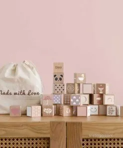 Ако търсите дървения конструктор, който съчетава строене, символи за ранни упражнения и естетика в пастелни тонове, този комплект дава ясна основа за разнообразни игри. Дървените кубчета позволяват свободно конструиране, а буквите и цифрите добавят идеи за учене чрез забавление – у дома, всеки ден, в темпото на детето.
