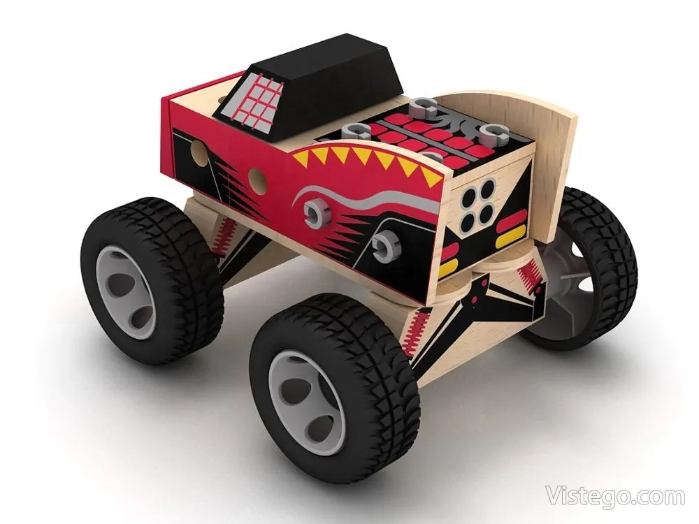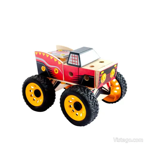 Този дървен конструктор е създаден като комплект за сглобяване на камион Monster truck. Идеята е проста: следвате инструкциите и постепенно оформяте модела, като използвате включените болтчета и гайки. Процесът е поднесен като игра, което улеснява детето да се ангажира и да довърши започнатото, без да се усеща като „задача“. Готовият резултат носи удовлетворение, защото е изработен със собствените ръце и може да се използва за ролеви игри.