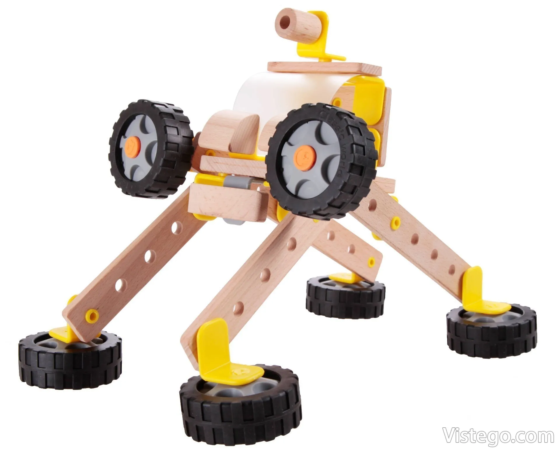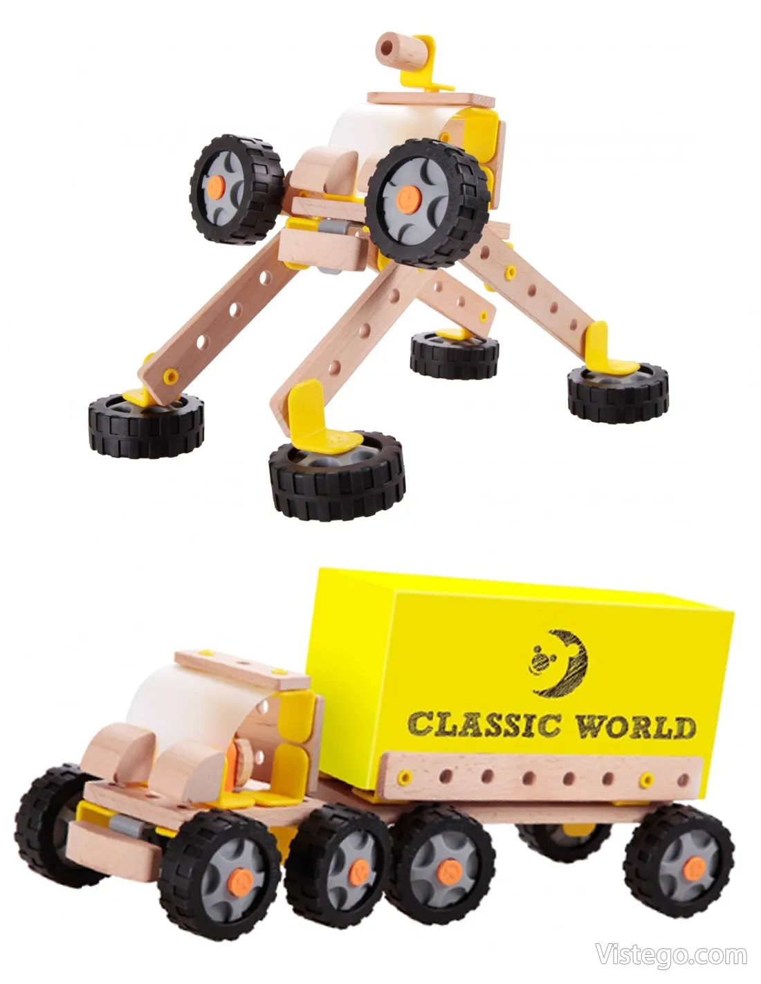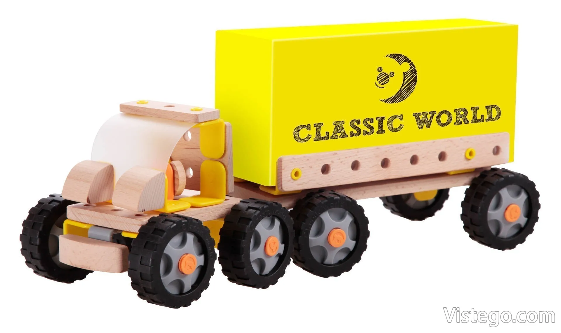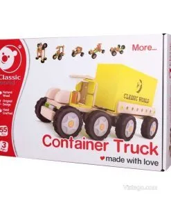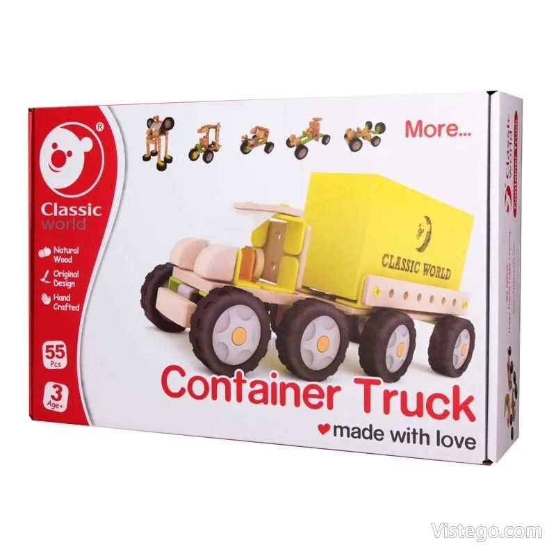 Дървен конструктор камион с тема Робот за сглобяване на контейнеровоз или друг модел превозно средство с дървени и пластмасови части.