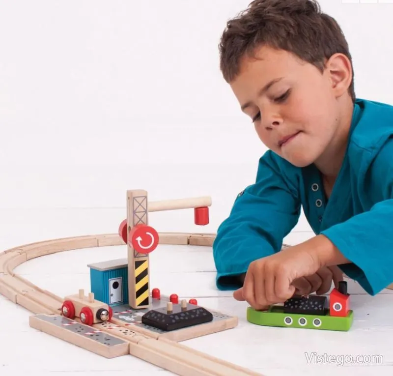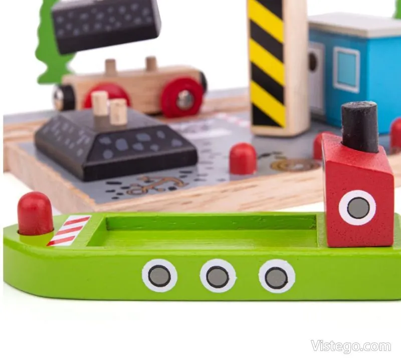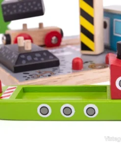 Дървеният кран с магнитна макара пасва отлично в игрови кът на пода или на маса, където влаковата композиция често се пренарежда. Днес товарът може да тръгне по релсите, утре да се „прехвърли“ към шлеп и после да се върне обратно, за да продължи по море или железопътен транспорт. Тази смяна на сценарии поддържа интереса, защото всяка игра може да започне по един начин и да завърши по съвсем различен. При игра с приятели децата лесно си разпределят роли: един управлява крана, друг движи каретата, трети измисля историята за пратката.